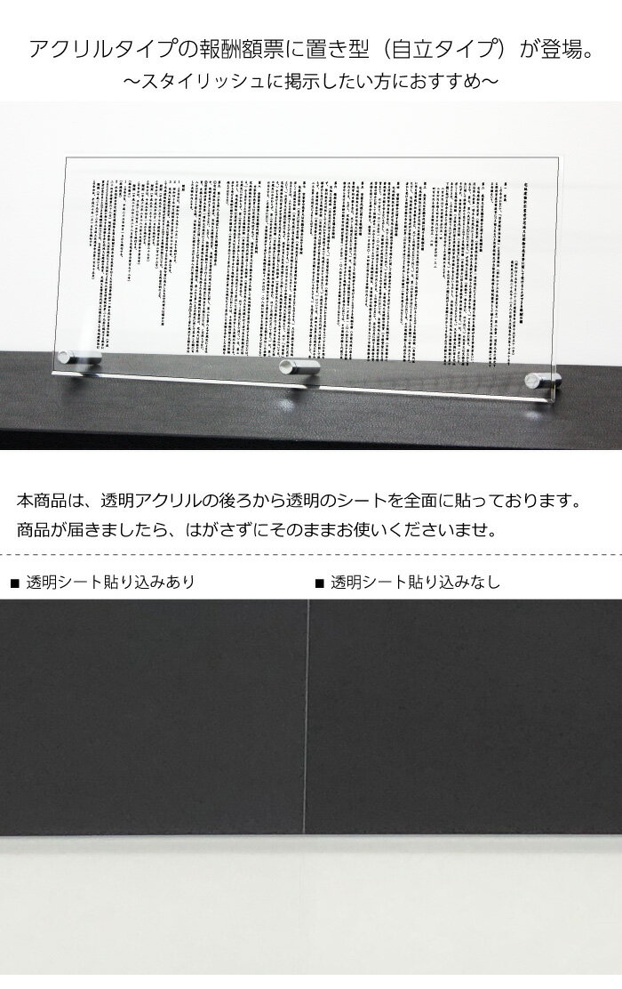 報酬額票 【 アクリル/置き型(自立)ビスタイプ】 H35×W80cm , H30×W70cm 宅地建物取引業者が宅地又は建物の売買等に関して受けることができる報酬の額 / 宅地建物取引業者 金看板 事務所 看板 不動産