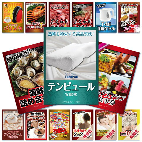 【あす楽】【送料無料】 目録景品セット《テンピュール枕が目玉の15点セット》テンピュール枕/レストランが選べるペアお食事券/ネスカフェバリスタ/釜茹で紅ズワイガニ1kg/黒毛和牛肉1kg/全国ご当地ラーメンセット 他<目録・A4パネル付>二次会 結婚式 ビンゴ ゴルフ